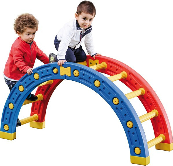 The included bridge securely connects the wheel to other play modules, such as a climbing triangle. The Balance Wheel is delivered unassembled, with all necessary tools included.