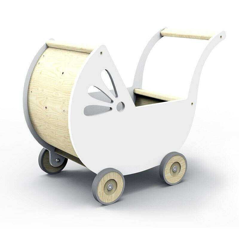 Charming wooden dolls' baby carriage, designed and made with great care, friendly and safe for toddlers.