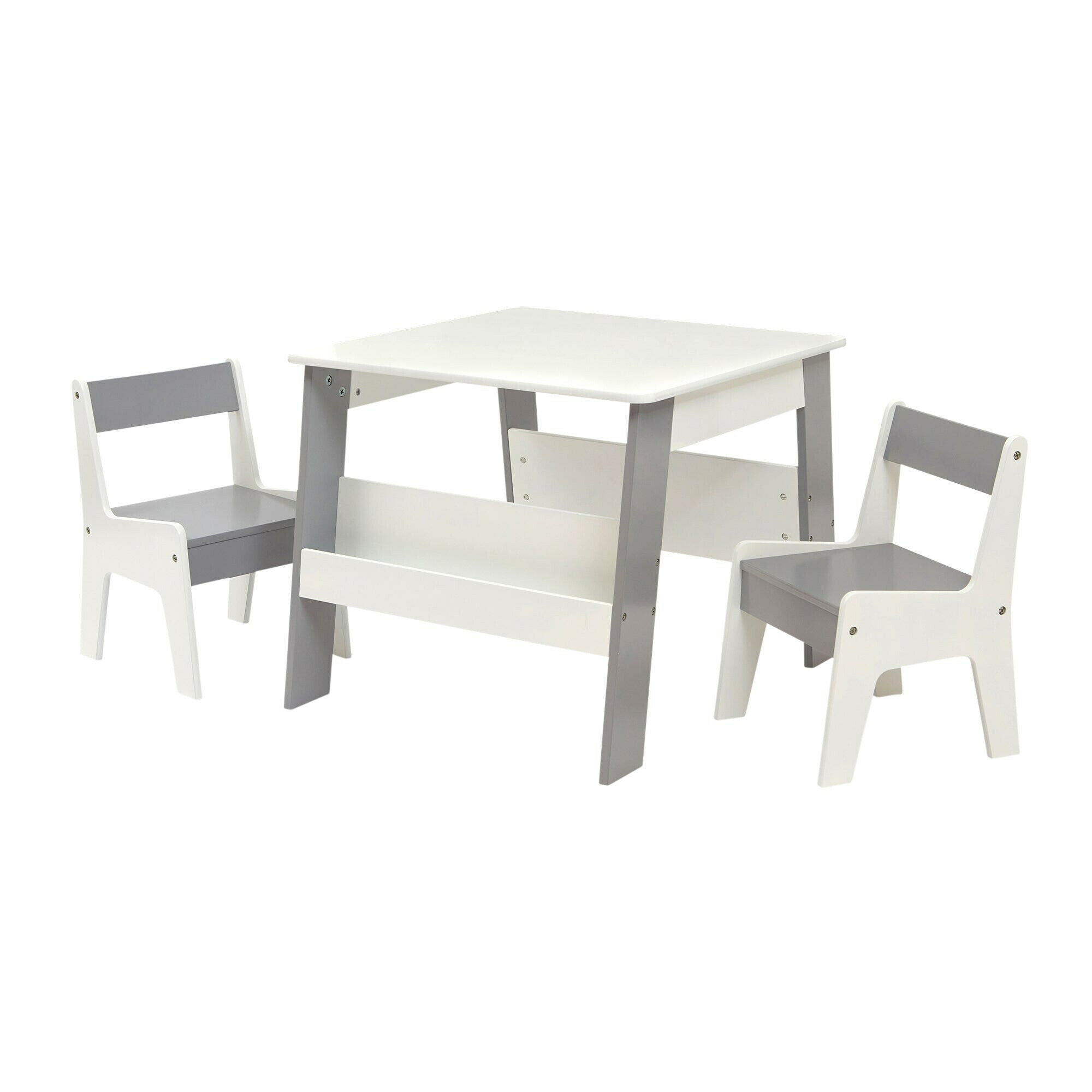 Additional Information: Kids White and Grey Bookshelf Table and Chair Set