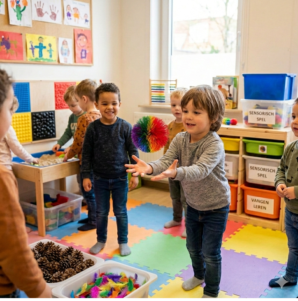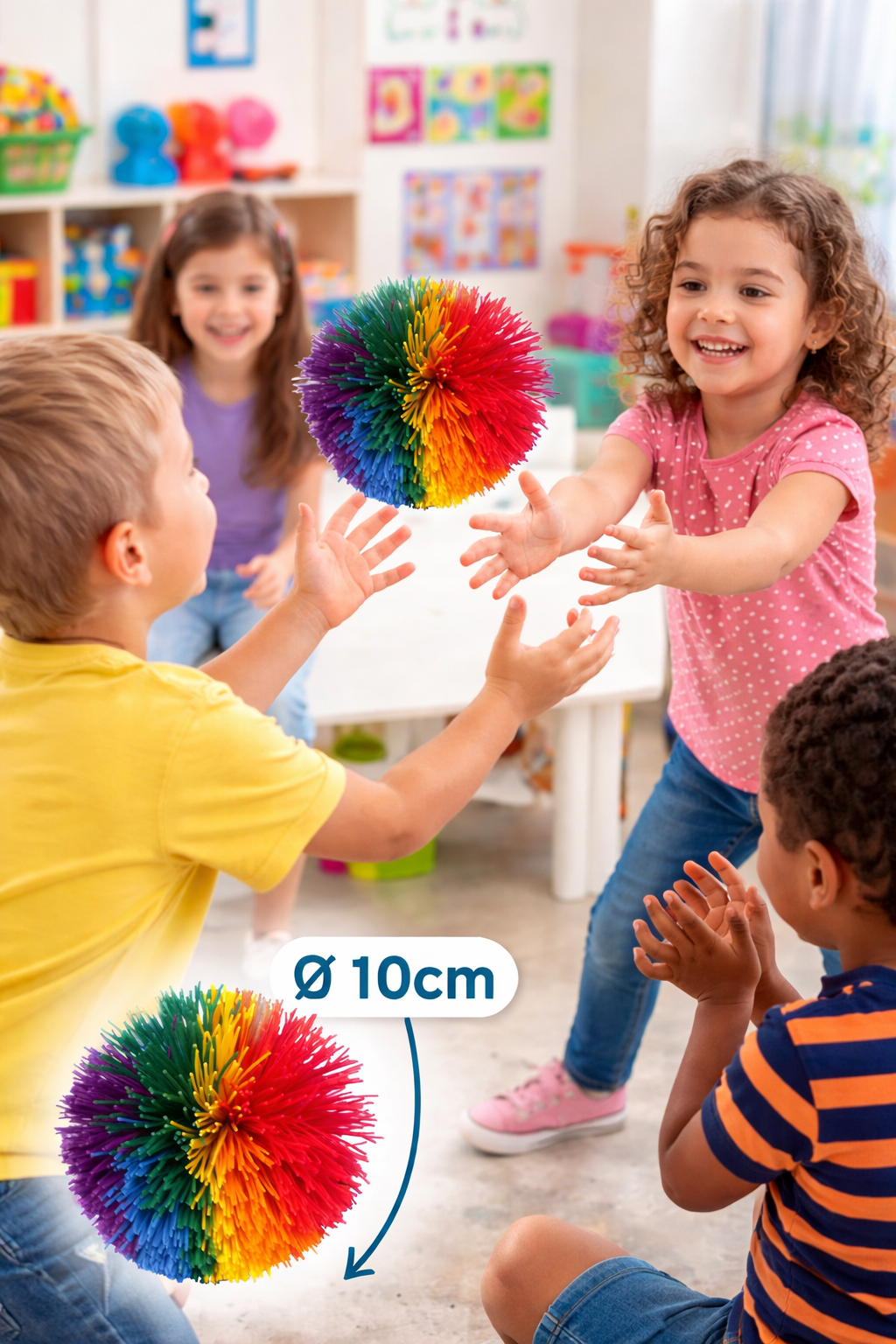 Colourful, soft & light for kid-friendly this rubber ball won’t roll away or ricochet off indoor objects with its rubber filament design.