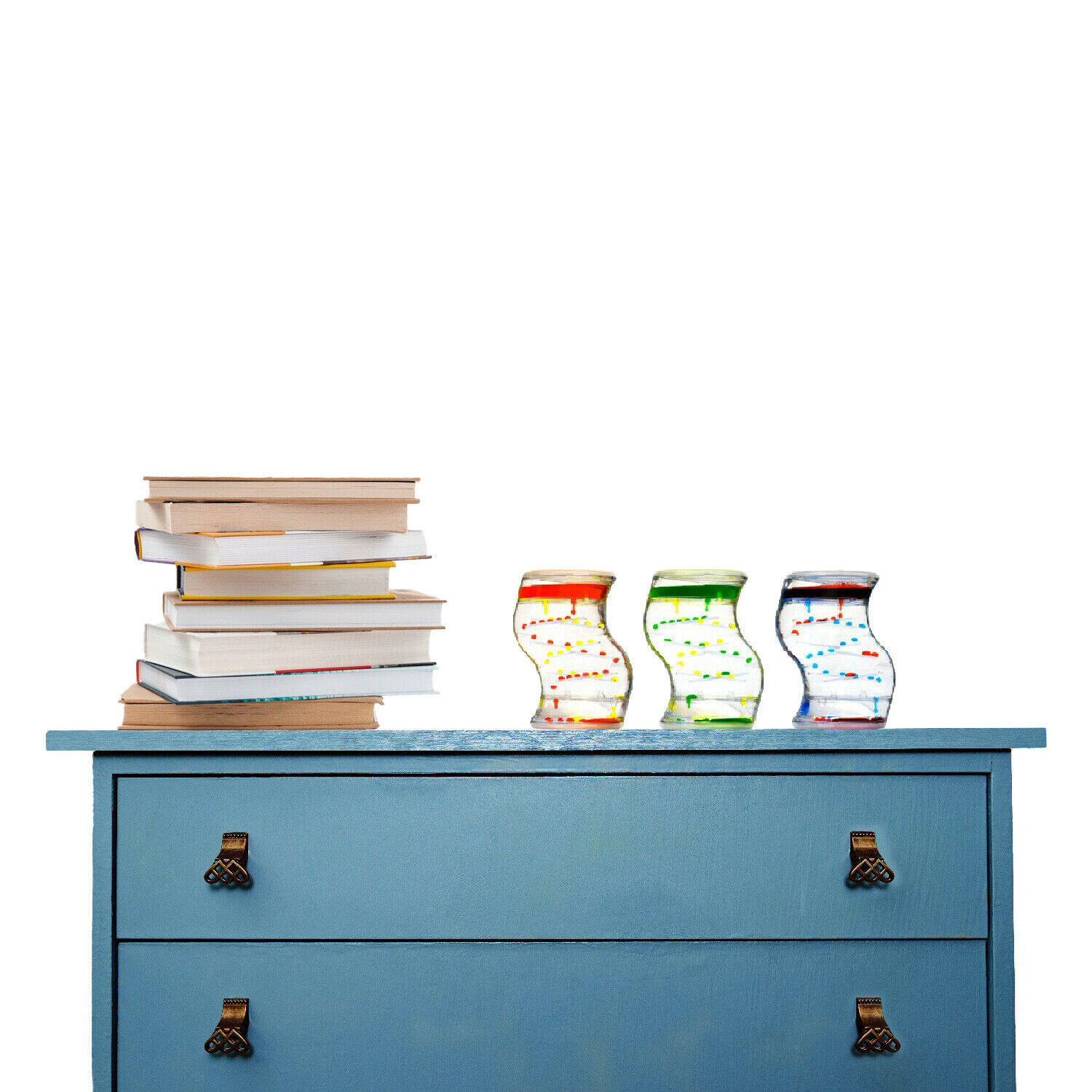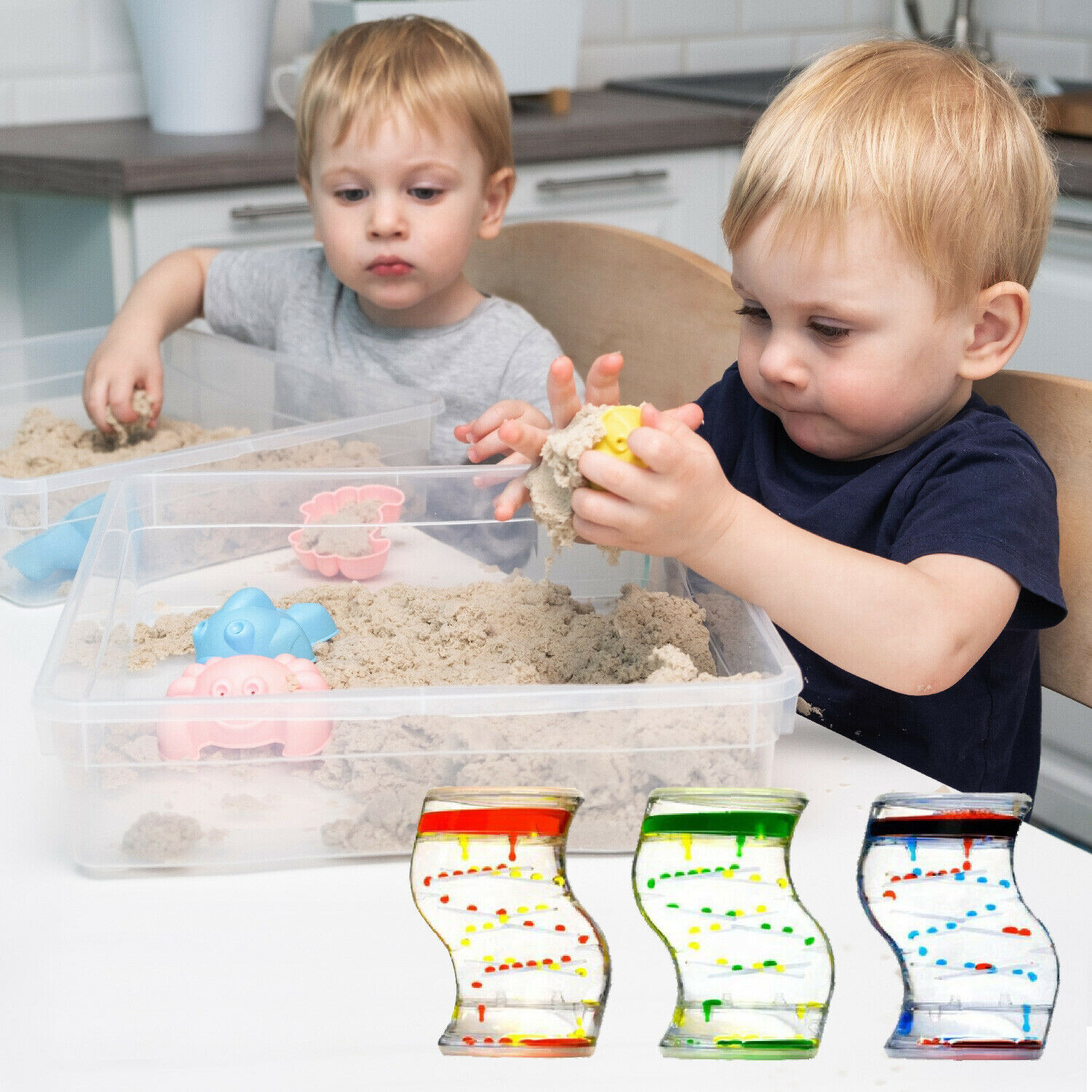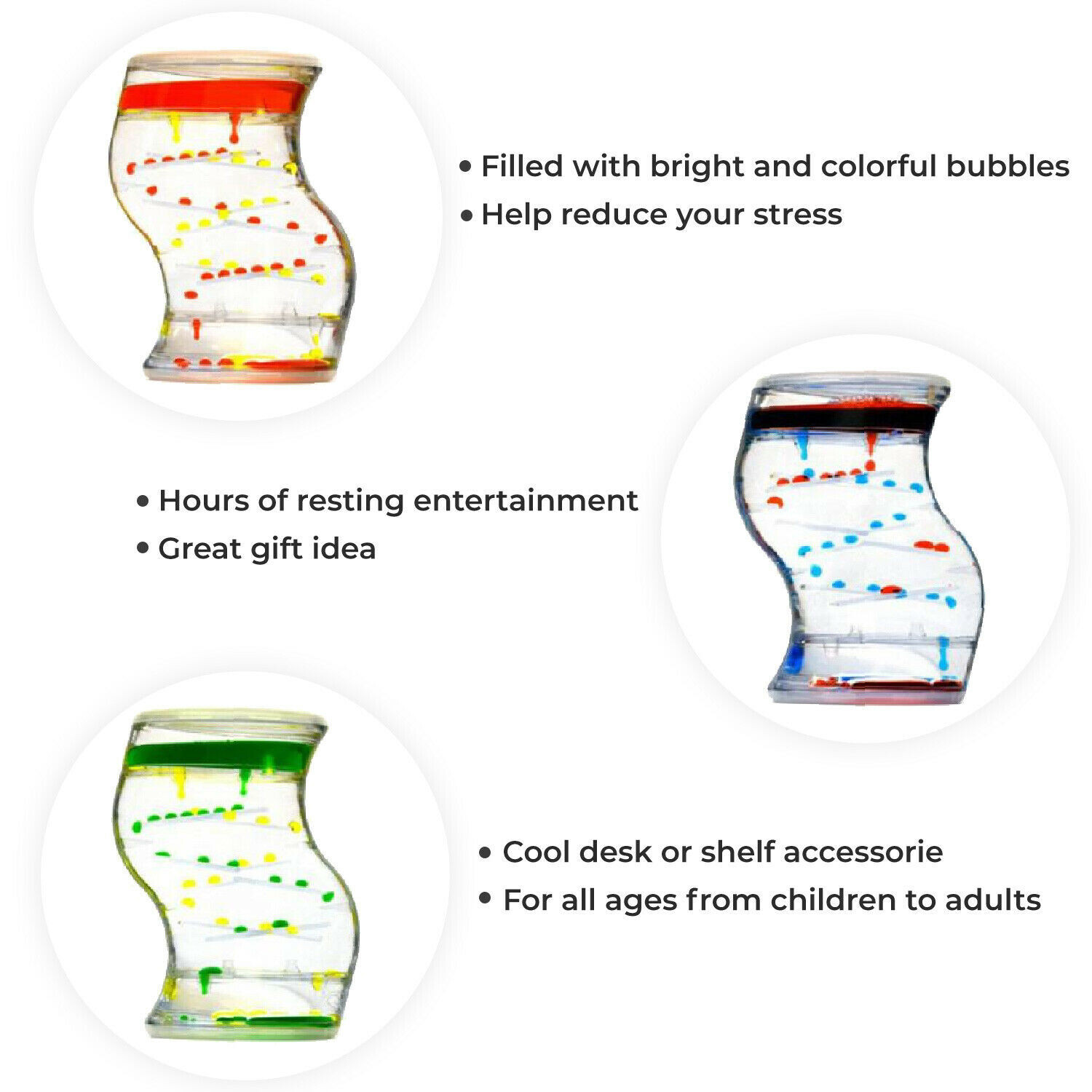 You simply turn them upside down and watch the two differently coloured bubbles simultaneously walk down the staircase to the bottom of the tube. The liquid timer takes approx 1 min to run through. Please note these timers are for sensory calming and not for accurate time management. The action of the liquid showers can stimulate visual learning with regards to colours and the passing of time. This sensory activity is praised as a fun and stimulating early years resource for younger children.