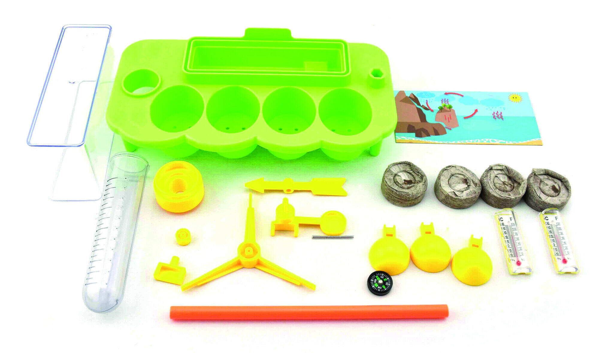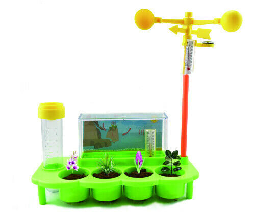 A fun way to learn about the weather. Create your own botanical mini garden with weather station and learn about the measurement and direction of the wind, the air temperature, water temperature, the recirculation of the rainwater and watch how the plants grow, as a result.