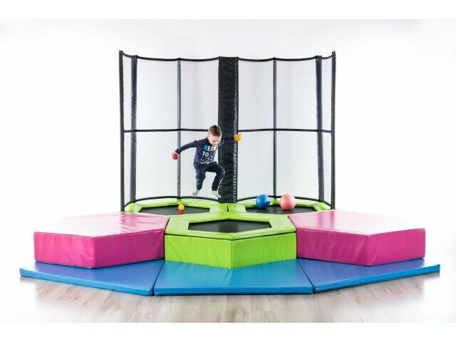 This mini jump trampoline park is not only ideal in a trampoline park, but also in indoor play areas, play areas of a daycare center or playgroups, campsites, restaurants or other public places.