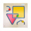 This Montessori activity wall panel made from birch plywood combines shapes, colors, and movement to stimulate children’s sensory and cognitive development. Featuring an integrated square and triangle with a movable colored ball, children can slide the ball through the shapes and explore how forms and colors change as they move.