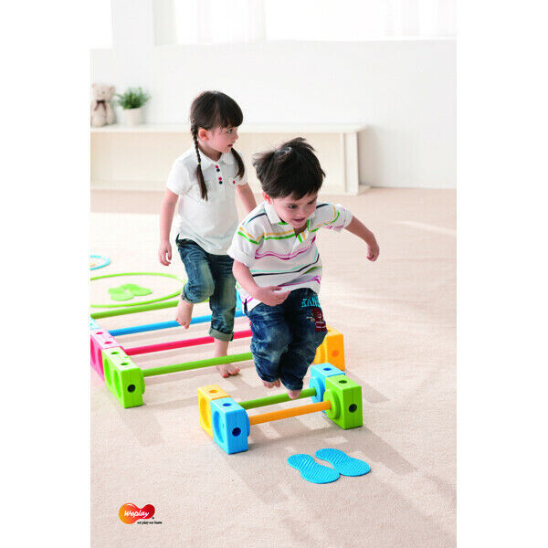 The basic equipment for every facility in a practical storage bag (71 x 81.5 x 13 cm). Contents: 12 small stones, 8 large stones, 4 rings 35 cm, 4 rings 60 cm, 16 rods 35 cm, 8 rods 70 cm, 24 connecting clips, 10 granulate bags, 6 pairs of feet-hands floor markings, 4 balance bars.