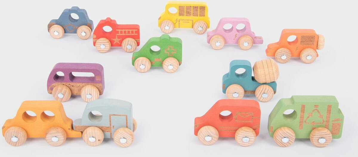 Additional Information: Rainbow Wooden Vehicles Set - Pk12