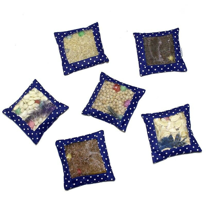 Sensory bags are a unique creation of the Sensory Toy Warehouse. It comes with a total package of six bags, each with a window along with it. You can easily see the filling of the bags through this window. Also, each of the six bags has a different material inserted. These include rice, beans, chickpea, mustard seeds, pumpkin seeds and flaxseed. The colours of the bag are miscellaneous, a single colour is not attributed to the bags.