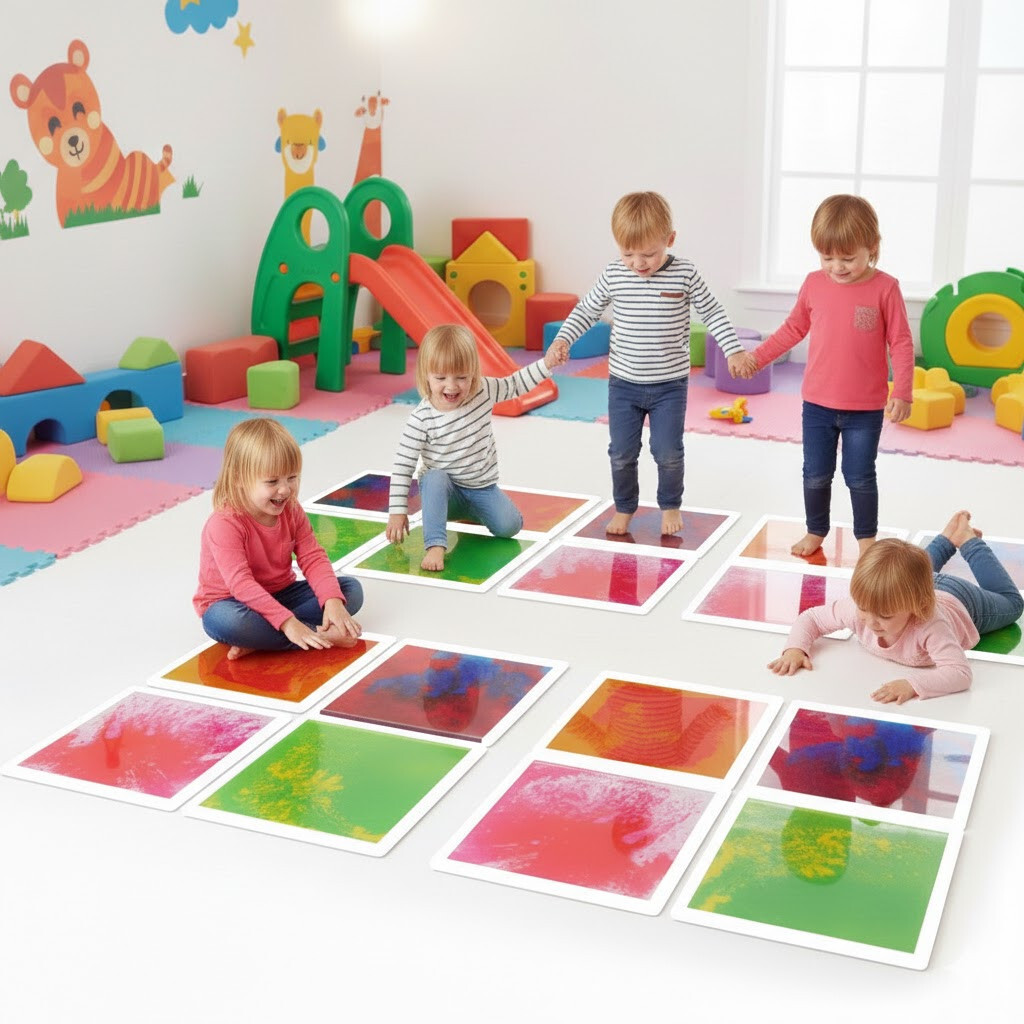 - Gross and Fine Motor Skills: Ranging from walking over the tiles to using fingers to push and move the gel.