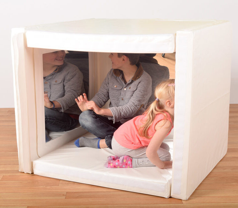 The Sensory Mirror Den – White is a specially designed space for relaxation and sensory stimulation. With five large panels, including three removable mirrors and two solid walls, this therapeutic den offers a safe and calming environment for children and adults with sensory needs.