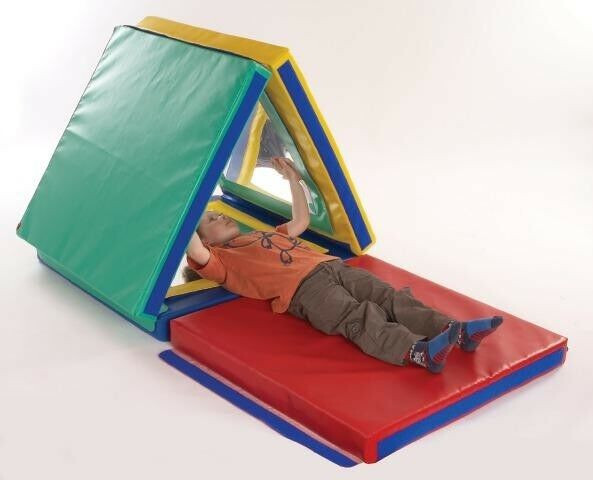 The Sensory Mirror Soft Play Set – Colorful is perfect for children who need sensory stimulation. With five panels, including removable mirrors in vibrant frames, this set provides visual stimuli that promote creative play and sensory development. The set can easily be transformed into a mirror house, tipi, or floor mat, providing versatility and long-lasting fun. Made from phthalate-free, antibacterial, and flame-retardant materials, it ensures safety and durability, making it ideal for therapy centers, schools, and home use. The set stimulates motor skills, self-awareness, and visual perception, and is easy to clean thanks to the removable mirrors.