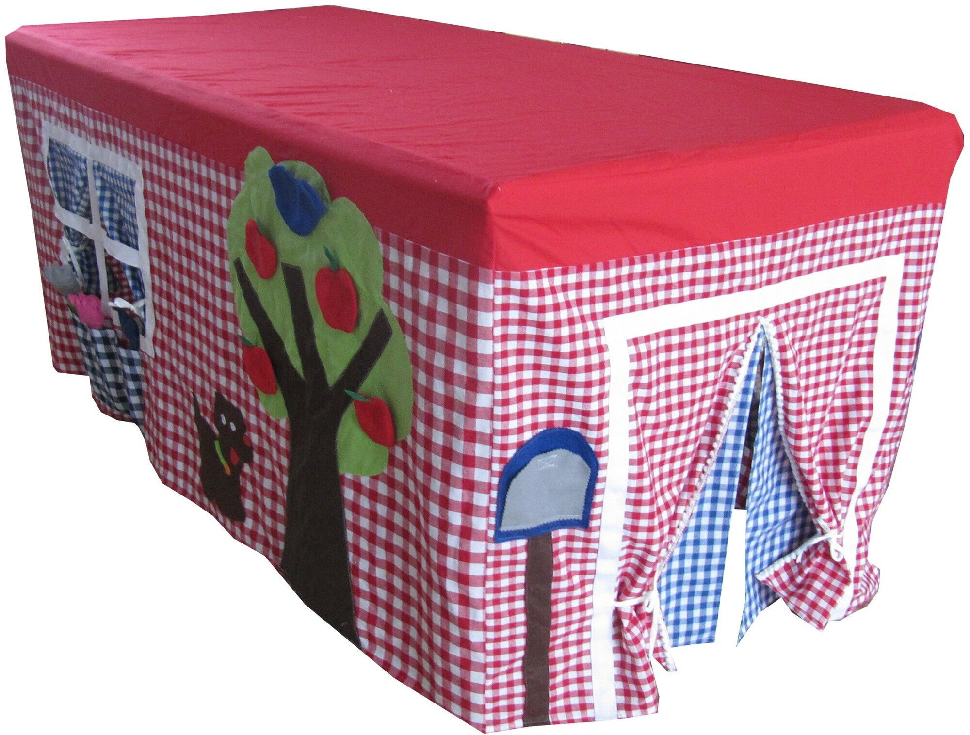 This handcrafted tabletent comes standard with a width of 80cm (please indicate when you require a alternative dimensions) and includes tree incl. 4 apples and a bird, bell, mailbox, two flower boxes, dog p>