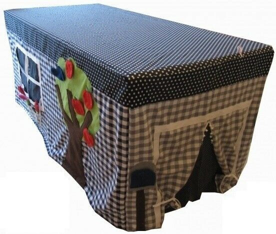 This handcrafted tabletent comes standard with a width of 80cm (please indicate when you require a alternative dimensions) and includes tree incl. 4 apples and a bird, bell, 2 flower boxes, mailbox, vegetable garden with tomato plant, 2 roots and a leek. p>