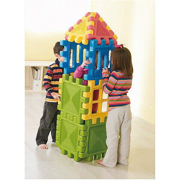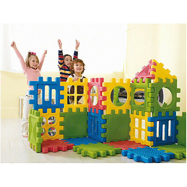 These twelve elements made of high-quality plastic can be built into waffle blocks with sensors, transmission and mirrors, there are no limits to creativity. Securely stacked on top of one another, the elements snap into place, they are stored in a space-saving manner.