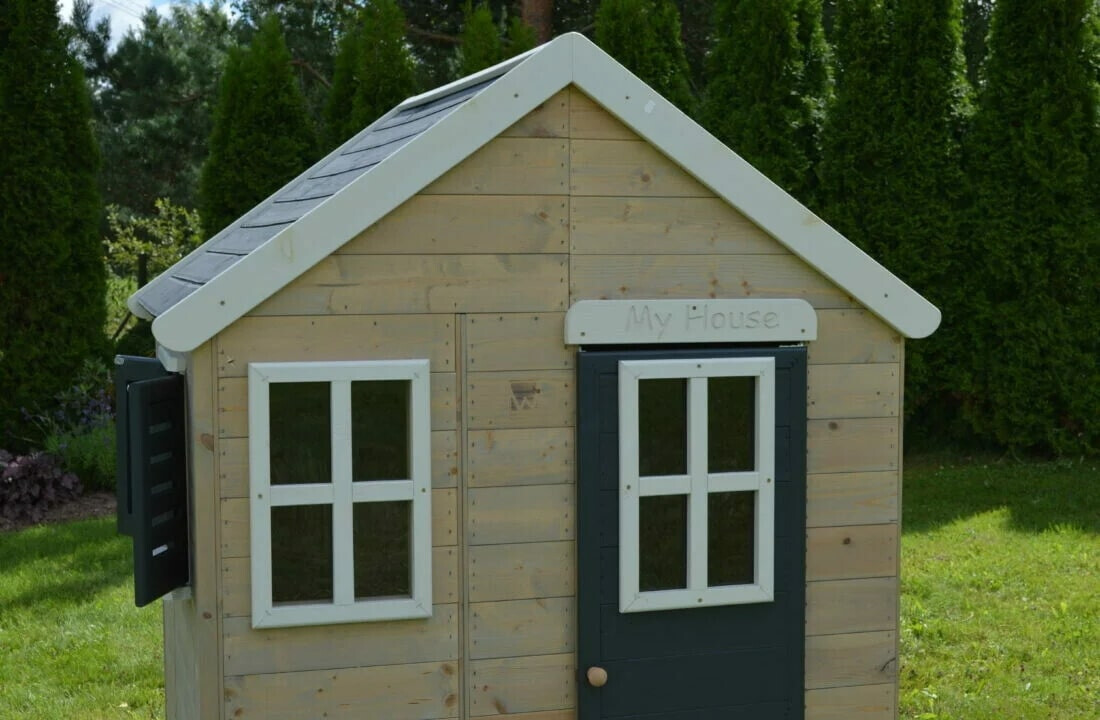 Playhouse is made of high-quality FSC certified wood and is durable and has a very stable structure. The safety of your children is given by the high-quality workmanship and the rounded edges. This children playhouse has pre-assembled and reinforced wooden panels that prevent it from deteriorating and reduce assembly time. Playhouse is not suitable for children under 3 years! It's recommended to repaint the house annually to keep it looking brand spanking new.