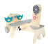 The Wooden Airplane Play Corner invites children to take flight into a world of creativity and play. Two steering wheels in the cockpit allow both pilot and co-pilot to take control. The propeller spins using a turning disc, while colourful wheels at the back create mesmerizing effects when turned by a crank. Additional discs under the seat add even more fun and sensory engagement.