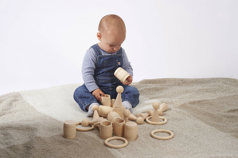 The word heuristic derives from the Greek word “eurisko” meaning “I discover” and describes an intuitive way of meeting challenges and solving problems. Our range of wooden heuristic play resources provides an opportunity to capitalise on toddlers’ curiosity about the objects that make up the world around them and provides valuable opportunities for extending children’s learning. The open-ended nature of heuristic play encourages children to explore and investigate in their own way, applying their own creative ideas and building on their own experiences.