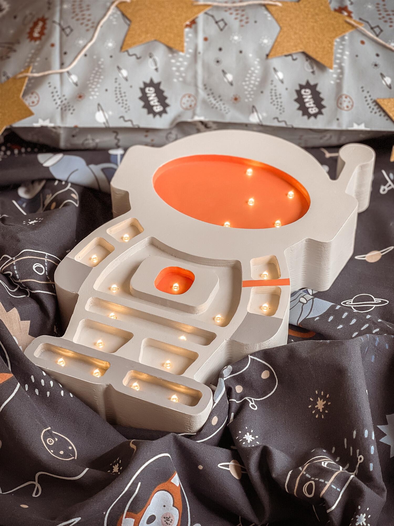 Discover this beautiful handmade wooden night lamp with LED lighting, perfect for any child's room. The lamp combines sophistication with inspiring shapes and seamlessly fits into various contemporary interior styles, adding just the right amount of charm to any space.